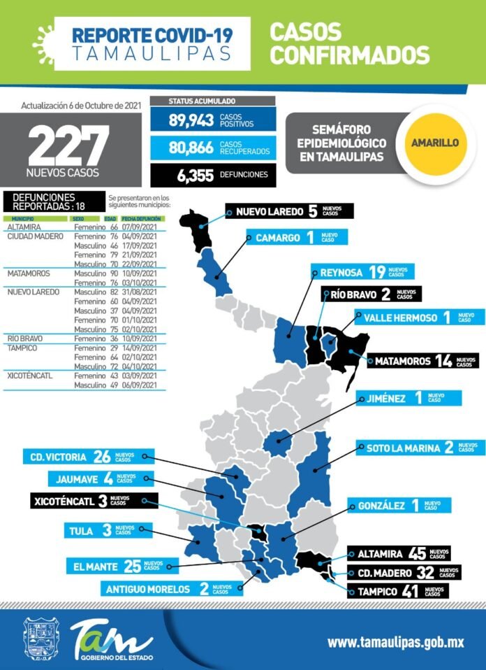 227 Nuevos casos de Covid-19 en Tamaulipas