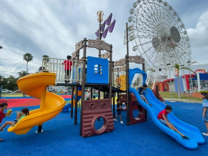 Chucho Nader precisó que los nuevos módulos de juegos infantiles, donados por las tiendas de conveniencia OXXO, se ubican en el área familiar instalada a un costado de la monumental Rueda de la Fortuna.