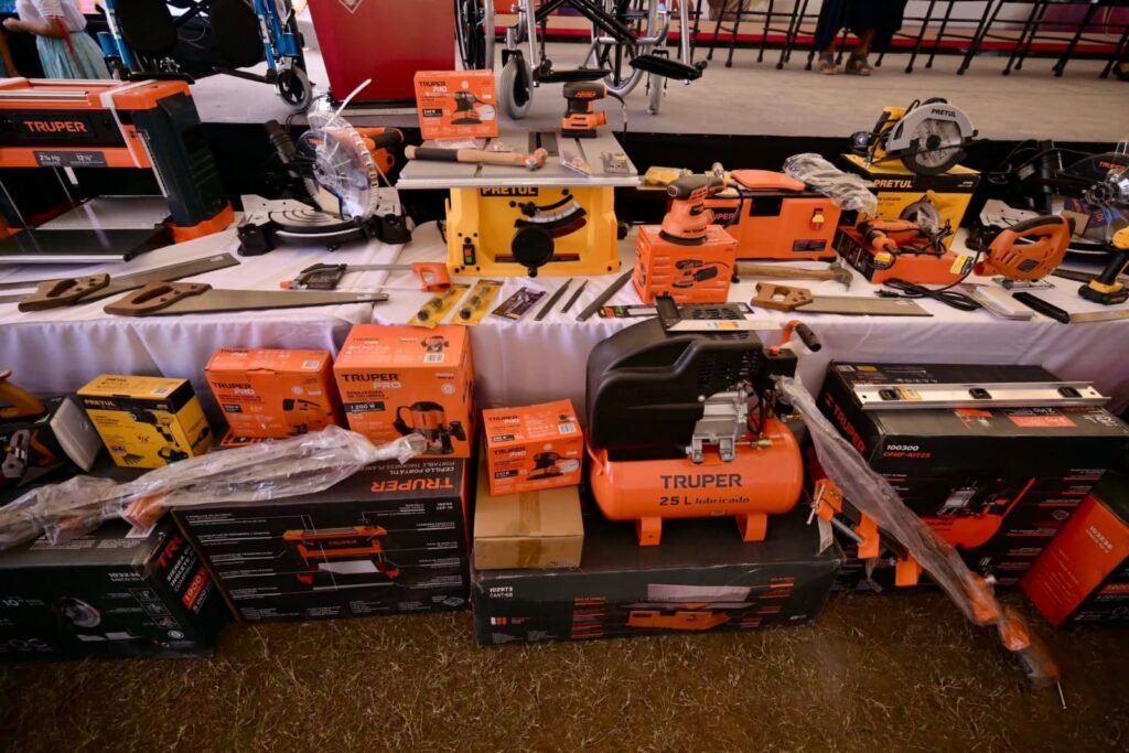 De manera paralela, a través de Apoyo a la Familia, se distribuyeron 7 mil 775 apoyos sociales que incluyen paquetes de lámina de zinc, refrigeradores, talleres productivos, catres, cobijas, despensas, kits de limpieza y apoyos funcionales; destacaron los talleres de panadería, cocina y carpintería, modelo que opera bajo esquemas cooperativos de capacitación y equipamiento, generando oportunidades de ingreso y organización social.