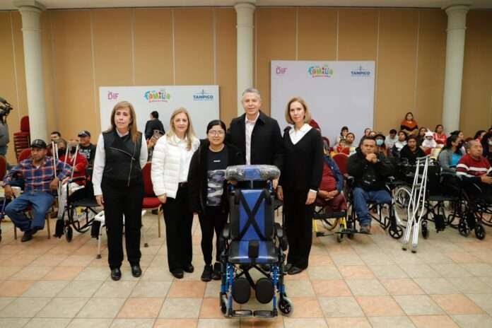 El Presidente Municipal Chucho Nader y su esposa, Aída Féres de Nader, titular del Sistema DIF Tampico encabezaron, este lunes en la Casa de la Cultura, una nueva entrega de aparatos funcionales a personas con discapacidad y a los adultos mayores.