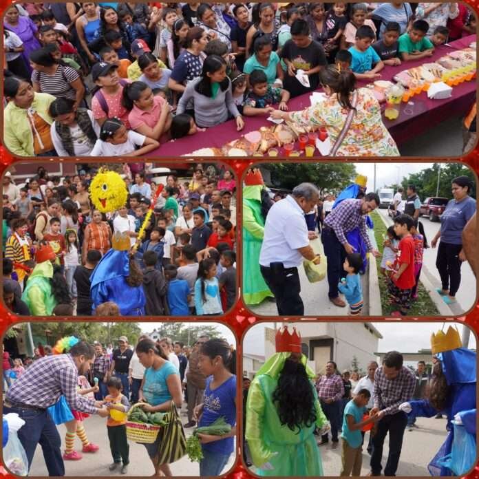 La tradicional celebración del Día de Reyes contó con la asistencia del alcalde, Néstor Rodolfo Rivera Pérez, quien personalmente hizo entrega de juguetes y golosinas a los festejados que lo acompañaron en el recorrido, desde “La Casa de Todos” hasta la explanada del palacio municipal, donde se ofreció un gran festejo de payasos, piñatas y una mega rosca de más de 400 metros de largo.