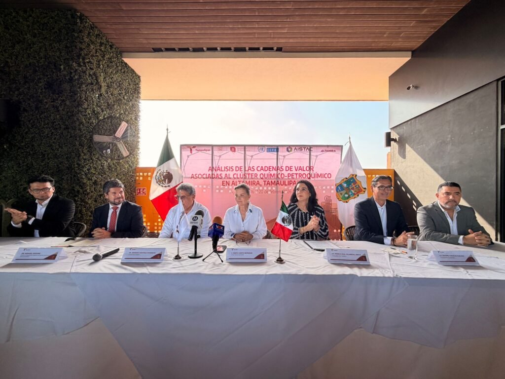 En el marco de la rueda de prensa donde se anunció la Misión Técnica de Análisis de Cadenas de Valor del Clúster Químico-Petroquímico en el sur de Tamaulipas, el alcalde de Altamira, Dr. Armando Martínez Manríquez, participó destacando la importancia de esta estrategia para fortalecer el desarrollo económico y la competitividad industrial de la región.