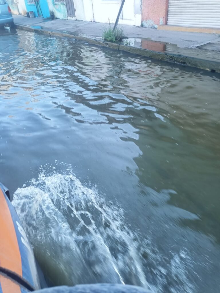 El problema también afecta a niños de nivel primaria, cuyos padres tienen que llevarlos hasta escuelas como la Armando Barba, ubicada en la zona centro de Madero, enfrentando el riesgo de caídas y accidentes en medio del agua estancada.