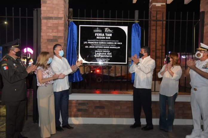 Lo anterior fue expresado por el Presidente municipal Chucho Nader al acompañar al Gobernador del Estado Francisco García Cabeza de Vaca a la inauguración de la Feria Tam Sur 2021 en el nuevo recinto ferial construido junto a la Laguna del Carpintero.