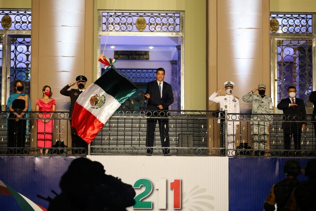 Por segundo año consecutivo la ceremonia del Grito de Independencia se realizó sin público en la Plaza Juárez de Ciudad Victoria, derivado de la pandemia por Covid-19, con el fin de garantizar la salud de las familias tamaulipecas evitando la aglomeración de personas durante las festividades patrias.