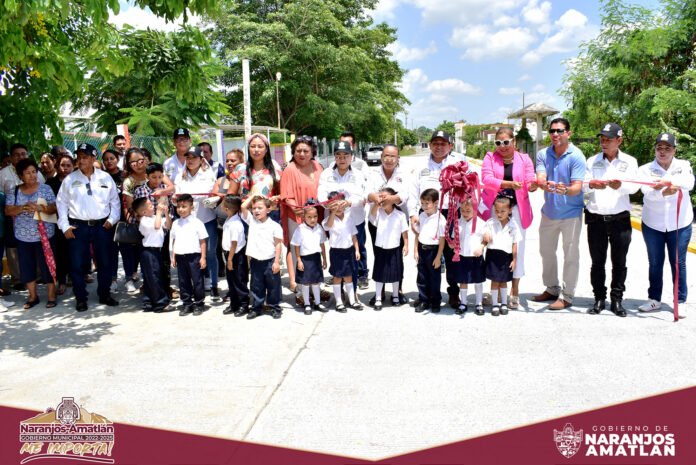 Naranjos, Ver. – Cumpliendo con los compromisos contraídos con la sociedad, el alcalde Mtro. José Luis Banda Cruz, en compañía de la Lic. Gabisela Hernández Gallardo, ediles y colonos, hizo entrega formal de una nueva obra de pavimentación a base concreto hidráulico en la calle Tuxpan, entre las de Chinampa y Amatlán, ubicada a un costado del auditorio.