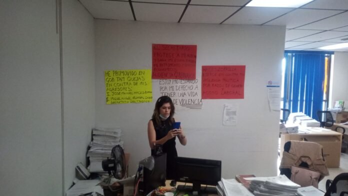 Tampico, Tam.- Una empleada de la Junta Local de Conciliación y Arbitraje en Tampico, denunció de manera pública a su jefe, el presidente de la citada dependencia José Manuel Haces Zorrilla, de hostigarla en lo laboral desde el 2018, y que a pesar de que ha acudido a las diferentes instancias para que la apoyen con ese problema, ninguna autoridad, ni el Instituto de la Mujer e incluso la Secretaría de Trabajo actúan en favor de sus derechos como trabajadora.La víctima en este caso es Laura Moreno Trejo, quien expuso que en primera instancia las funciones de un auxiliar jurídico son de nivel 149 y a ella la tienen ganando con un nivel 120, esa, dijo, es la primera de varias violaciones a sus derechos laborales. «Estoy manifestándome en contra del licenciado José Manuel Haces Zorrilla por violencia política por razón de género y por acoso laboral no de un día o dos sino de tres años desde que ingresé a trabajar ha sido un asedio en contra mía pero el 15 de enero de este año encerrada en su oficina y ante dos compañeras de la Junta local empezó a insultarme, a decirme que en sus más de 45 años jamás había conocido a una persona que detestara tanto que me detestaba no me toleraba sólo me soportaba, que yo no era parte de su equipo, entre otras humillaciones».Señala ella que ha sido difamada que siempre ha intentado él poner una queja en su contra porque quiere despedirla pero ella se defiende. «Yo trabajo mucho, ese yo creo que es el peor error que he cometido en la función pública, una persona de la Junta Local quería quejarse en mi contra porque yo trabajaba mucho y a ella le tocaba hacer una lista de estrados de 14 líneas, el licenciado en base a eso me mandó llamar y yo no llevaba nada para grabarlo y cuando entré empezó a agredirme, yo no sé por qué me estaba agrediendo, después me dijo que era porque yo estaba hostigando a la señorita por hacer la lista de estrado de 14 líneas, es absurdo, el licenciado Haces no se pudo contener y una mujer de la Junta Local me defendió porque ya era mucha la violencia», narró la afectada al tiempo que dijo que todos en esa oficina se dan cuenta de los abusos del jefe cometidos no sólo en contra de ella sino de algunos otros empleados pero señala que nadie habla porque le tienen temor por el poder político que el acusado representa y el poder económico que tiene. «No deja de ser un empresario y un político».Señala la informante que ella no había accionado porque tiene necesidad de trabajar pero que ha tocado las puertas de varias instancias como la del Instituto de la Mujer, de la Comisión Estatal de los Derechos Humanos, de los representantes populares, del Gobernador y de la representante en el sur del mismo mandatario estatal, Magdalena Peraza Guerra pero señala que sólo le dicen que luego verán el caso y los representantes, dice, ni la del Instituto de la Mujer siquiera vieron sus mensajes.»Es un semáforo rojo por violencia política. Además, hice del conocimiento al Secretario de Trabajo de la situación que pasa aquí en mi contra y me mandó llamar para despedirme el 6 de septiembre de este año y yo les dije a los de Recursos Humanos que no me pueden despedir mientras no haya una resolución de la queja que me pusieron», añadió la licenciada.Ante esta situación, dice que ella ya presentó dos quejas ante Gobierno del Estado una en contra de José Manuel Haces como principal agresor y otra contra del secretario de Trabajo, Miguel Ángel Villarreal Ongay porque dice que como no la pudieron correr le quitaron su pago mensual afectando de manera directa sus derechos económicos reconocidos en el Derecho Internacional Universal.»Expuse el acoso, hostigamiento y violencia de la que he sido objeto ante las instancias que ya mencioné y todos se hacen de la vista gorda», recalcó.La joven abogada dijo que recurría a los medios de comunicación porque no dejan de ser el cuarto poder y que a través de ellos hacía un llamado a la sociedad y les decía que en el gobierno de Tamaulipas, en la Secretaría de Trabajo y en la Junta Local de Conciliación y Arbitraje irónicamente están violentando a una mujer por ser mujer.De momento la empleada está trabajando pero en la pared donde se ubica su escritorio colocó varios carteles con consignas y señala que no cesará en su empeño porque se haga justicia. «Yo ya no tengo nada qué perder, ya afectó mi esfera jurídica económica de manera directa a pesar de saber que tengo dos hijos, mi esposo fue despedido por pandemia, pedimos préstamo bancario para pagar mi casa y sólo percibo 300 pesos y es una gran injusticia».»Nunca había sufrido yo tanta violencia y no creía yo la verdad en la violencia psicológica y estoy siendo objeto de eso. No importa el Estado Mexicano que ha firmado y ratificado convenciones, convenios y tratados internacionales en contra de la violencia de género, no importa que haya una ley general que defiende los derechos dela mujer a vivir una vida libre de violencia, no importa, eso no importa cuando hay una persona con poder, «es letra muerta».La inconforme dijo que confía en que su llamado llegará al Gobernador a quien pide una audiencia para solicitarle que no intervenga pues se irá a juicio contra su agresor y contra el Secretario de Trabajo.