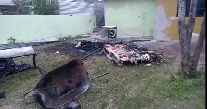 El señor al perder la razón por el coraje que traía terminó por quemar un refrigerador, una lavadora,  un colchón  y una carretilla entre otras cosas.