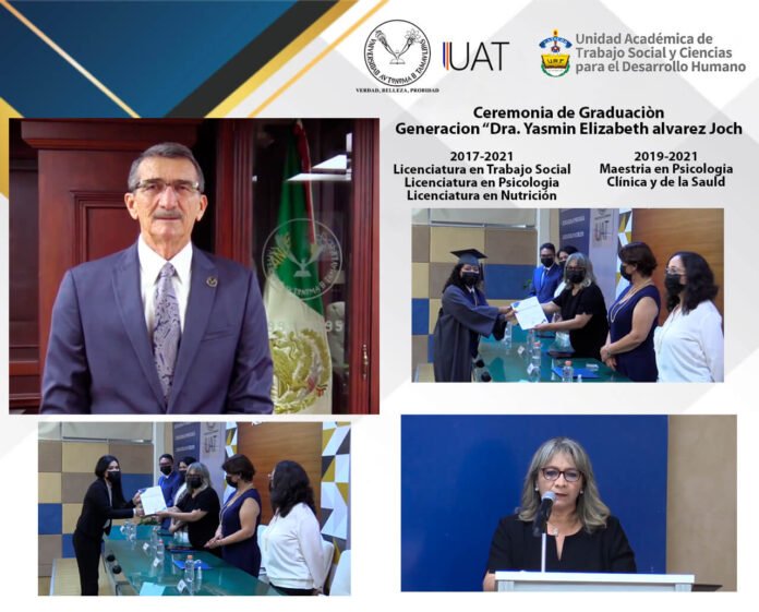 El Ing. José Andrés Suárez Fernández, Rector de la Universidad Autónoma de Tamaulipas, presidió la ceremonia virtual de graduación de los 55 alumnos de licenciatura pertenecientes a la generación 2017-2021 y de los 18 estudiantes de maestría generación 2019-2021 de la Unidad Académica de Trabajo Social y Ciencias para el Desarrollo Humano (UATSCDH).