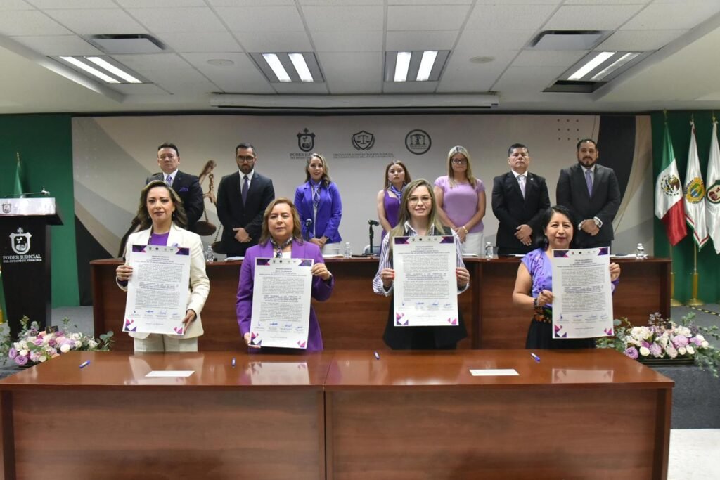 Esto en el marco de la Primera Sesión Extraordinaria de la Comisión del Protocolo para la Prevención, Atención y Sanción del Hostigamiento y Acoso Sexual en el Poder Judicial del Estado de Veracruz, las presidentas del Órgano de Administración Judicial, Tribunal Superior de Justicia, Tribunal de Disciplina Judicial y Tribunal de Conciliación y Arbitraje, encabezaron el acto simbólico firmando el documento, en el que refrendan el compromiso de garantizar entornos libres de cualquier tipo de violencia, especialmente aquella que atente contra la integridad y los derechos de toda persona.