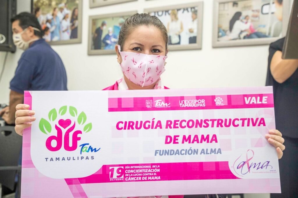 Con la Fundación Alma, desde el 2017 a la fecha se han realizado 37 cirugías reconstructivas con el apoyo de la Secretaría de Salud en Tamaulipas y el personal médico del Hospital General “Carlos Canseco” de Tampico, también se han entregado 100 prótesis de mama.