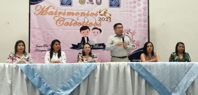 Tantoyuca, Ver.- El H. Ayuntamiento que preside el ingeniero Jesús Guzmán Avilés a través del DIF Municipal que encabeza la contadora María de Lourdes Martínez de la Garza, en coordinación con la Oficialía del Registro Civil, realizaron bodas colectivas, siendo un total de 74 parejas que se unieron en matrimonio.