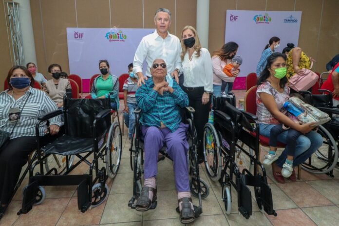 Con el objetivo de mejorar la calidad de vida y facilitar el desplazamiento y traslado de las personas con discapacidad, la titular del Sistema DIF Tampico, Aída Féres de Nader encabezó este lunes, una nueva entrega de apoyos funcionales en la Casa de la Cultura.