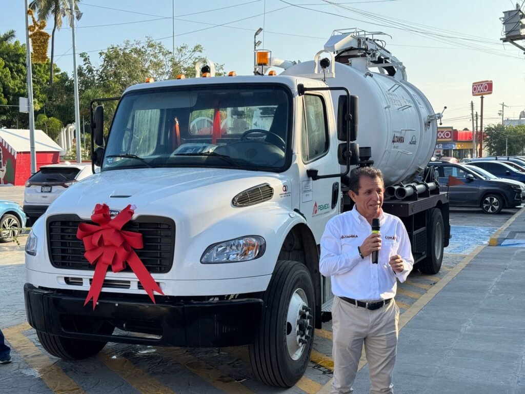 “La vez que estuvo la Dra. Claudia Sheinbaum Pardo en Altamira se comprometió ayudar en las acciones de saneamiento y hoy así lo vemos. Estamos concluyendo el 2025 de la mejor manera posible y esperamos que el 2026 sea mucho mejor. La COMAPA Altamira tiene una gran responsabilidad pues está trabajando en la reparación de socavones propiciados por las lluvias y líneas de drenaje deterioradas, por lo que este camión es un importante apoyo’’, expresó.