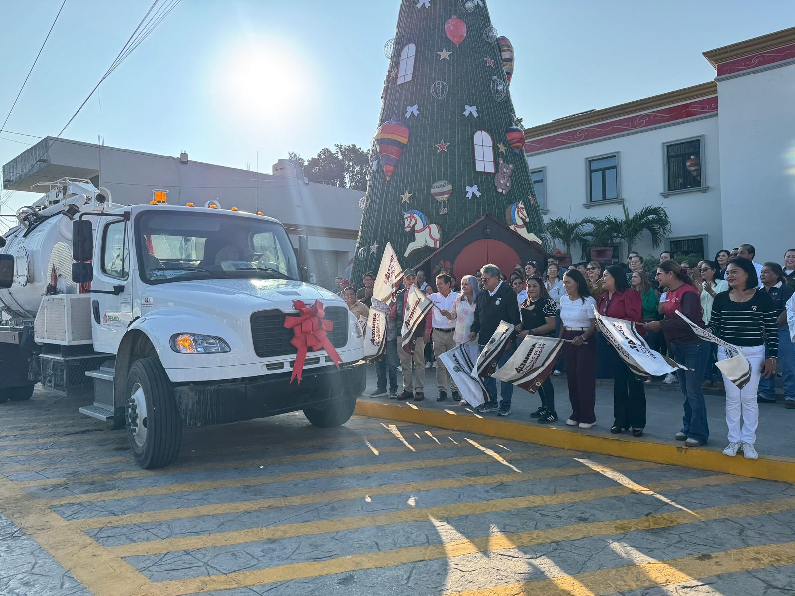 Por su parte, el jefe de la comuna altamirense destacó el gran apoyo que Altamira ha recibido de los gobiernos federal y estatal pues anteriormente el gobernador del Estado, Dr. Américo Villarreal Anaya, entregó un camión de succión y vacío similar, y ahora PEMEX y la compañía Linde facilitan otro vehículo para el mejoramiento de la red hidrosanitaria.