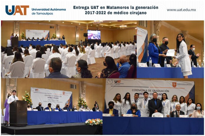 Un total de 74 estudiantes de la Universidad Autónoma de Tamaulipas (UAT) recibieron el reconocimiento por la culminación de sus estudios del programa educativo de Médico Cirujano que imparte la Facultad de Medicina e Ingeniería en Sistemas Computacionales de Matamoros (FMISCM), correspondiente a la generación 2017-2022.