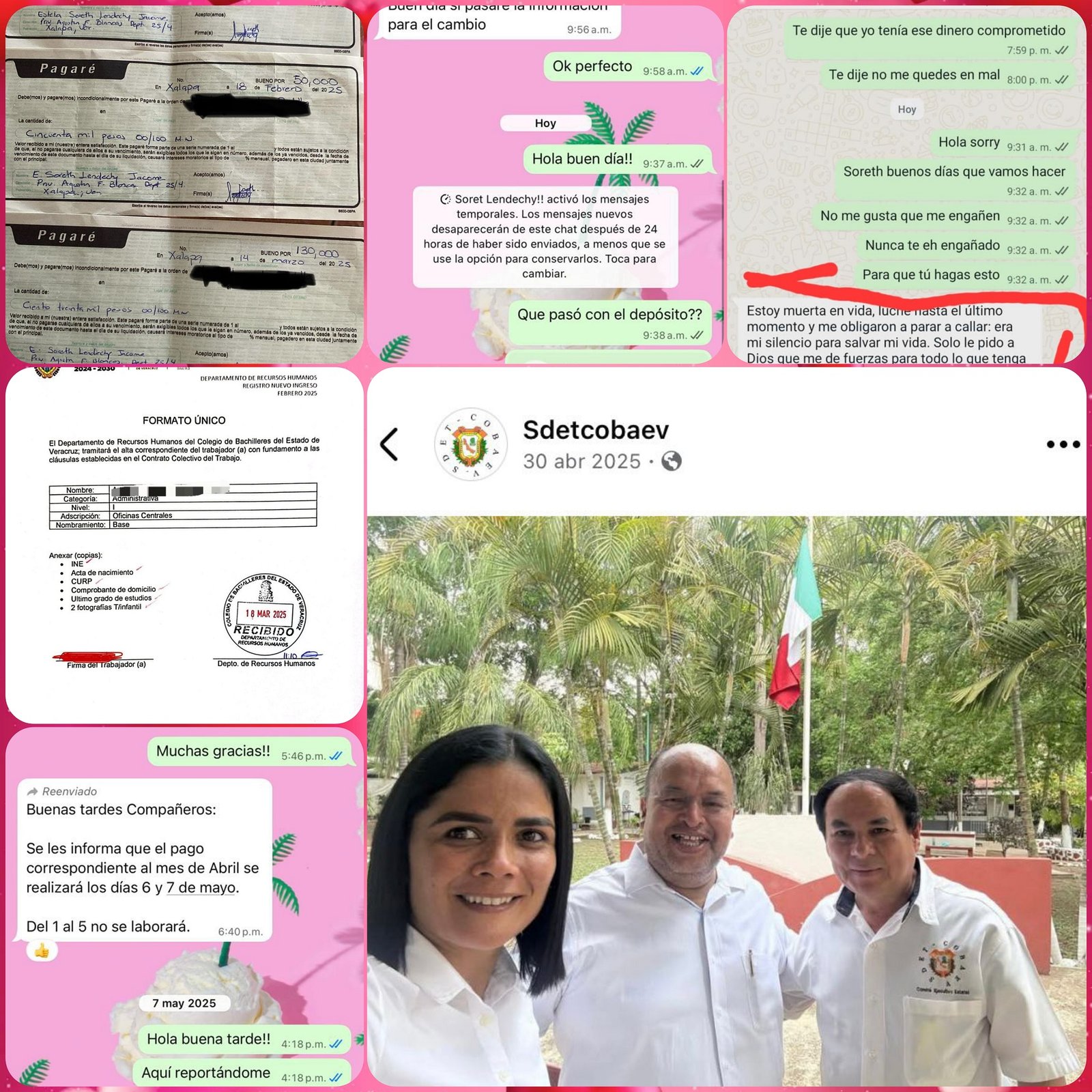 Las víctimas aseguran contar con pruebas contundentes: transferencias bancarias, pagarés y comunicaciones directas, además de documentos con sellos oficiales del COBAEV. A pesar de ello, la institución ha intentado deslindarse de los hechos, lo que ha generado aún más indignación.