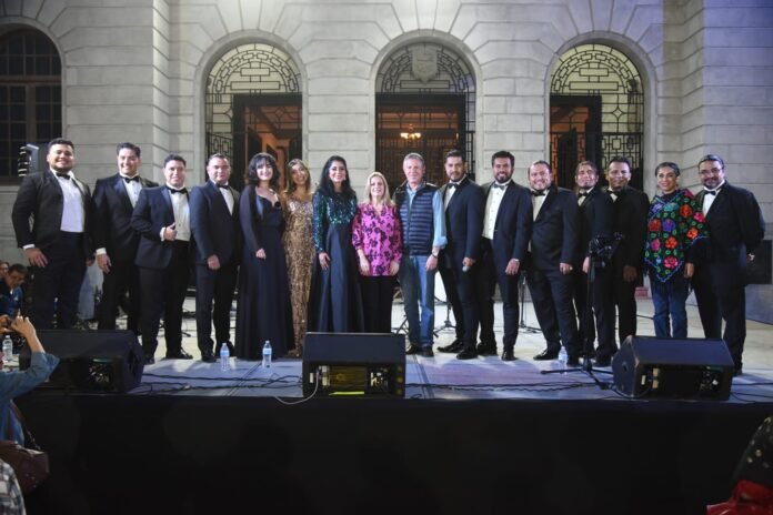 En el marco de los festejos decembrinos, el Alcalde Chucho Nader, acompañado de su esposa, Aída Féres de Nader, titular del sistema DIF Tampico presidieron la noche de este jueves, la magna presentación los 10 Tenores Tamaulipecos en el pórtico del palacio municipal.