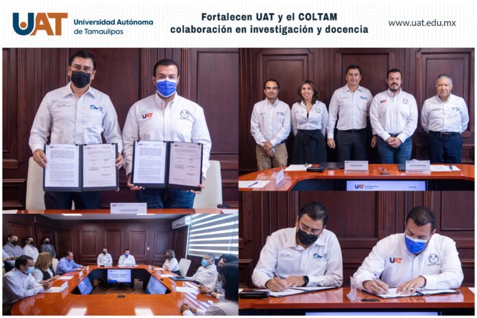 El C. P. Guillermo Mendoza Cavazos, Rector de la Universidad Autónoma de Tamaulipas (UAT), firmó con El Colegio de Tamaulipas (COLTAM) un convenio marco de colaboración cuyo objetivo es fortalecer y ampliar los lazos en materia de investigación científica y docencia entre ambas instituciones.