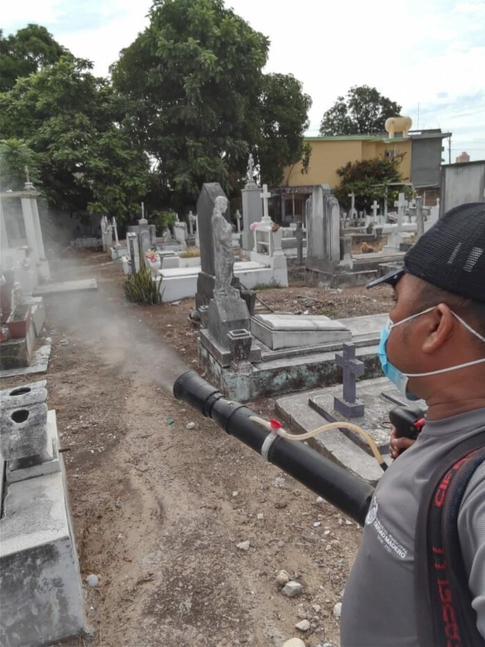 Lo anterior fue informado por la directora de Municipio Saludable, Tatiana Ojeda Caballero, quien detalló que las brigadas de la dependencia a su cargo efectuaron los trabajos de fumigación con motomochila contra el mosco adulto en ambos camposantos.