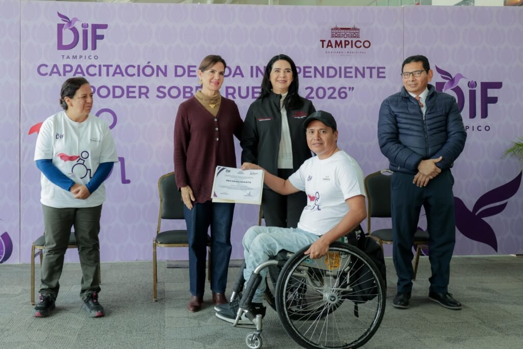 La presidenta municipal de Tampico, Mónica Villarreal Anaya, y la titular del Sistema DIF Tampico, Luz Adriana Villarreal Anaya, encabezaron la clausura del Curso de Vida Independiente: “Poder sobre Ruedas”, que tuvo como propósito capacitar a personas con discapacidad motriz para lograr mayor autonomía e independencia.