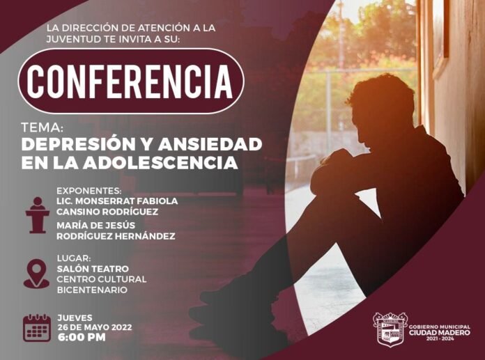 Interesante conferencia sobre “Depresión y Ansiedad en la Adolescencia” será impartida el próximo jueves 26 de mayo a las 6 de la tarde en el salón teatro del Centro Cultural Bicentenario, ubicado en la colonia Felipe Carrillo Puerto.