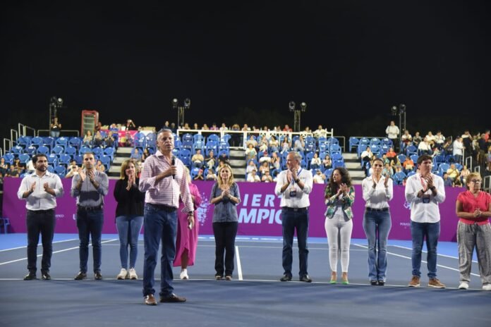 El mandatario explicó que, además de las canchas de tenis, el Gobierno local ha llevado a cabo la construcción de un moderno estadio de Softbol; dos canchas de futbol de pasto sintético, el pórtico principal de la ciudad deportiva; además de la modernización de los campos de béisbol y la rehabilitación integral de las techumbres en las canchas de basquetbol, entre otros espacios, lo que representa más de 80 millones de pesos invertidos para ampliar y modernizar la infraestructura deportiva en beneficio de la población que habita en el municipio y en la zona conurbada.