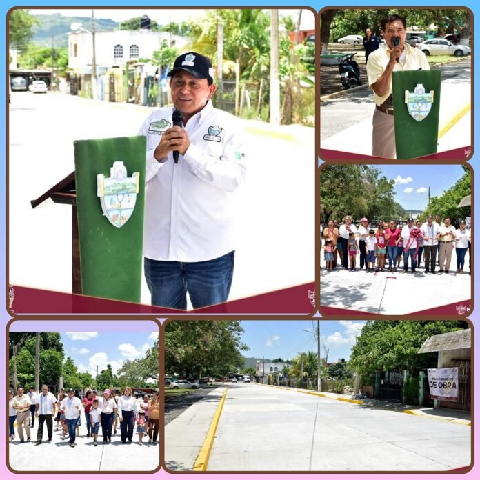 Naranjos, Ver. – Comprometido con el crecimiento y el desarrollo del municipio, el alcalde Mtro. José Luis Banda Cruz continúa entregando obras que benefician a los naranjenses, por lo que en compañía de su equipo edilicio y colonos, inauguró formalmente la pavimentación de concreto hidráulico en la calle 10 de Abril, entre las calles Plan de Ayala y Venustiano Carranza, en la colonia Emiliano Zapata.