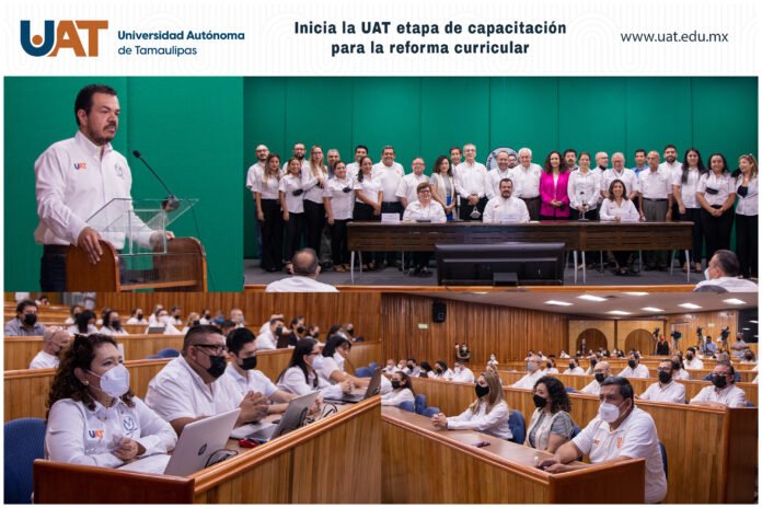 El C. P. Guillermo Mendoza Cavazos, Rector de la Universidad Autónoma de Tamaulipas (UAT), presidió la inauguración de la etapa de capacitación para la reforma curricular de los programas educativos que imparte la máxima casa de estudios tamaulipeca.