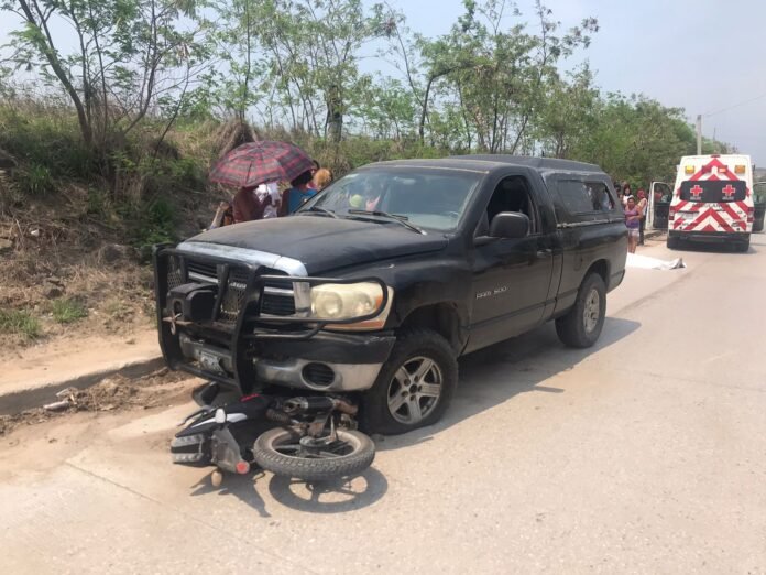 Altamira, Tam. – Por invadir carril un joven de apenas 17 años, el cual viajaba a bordo de una motocicleta tipo deportiva color negra terminó impactando de frente con una camioneta y perdió la vida.