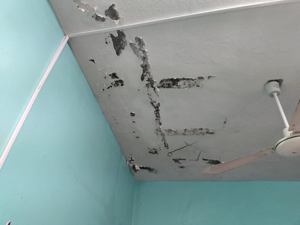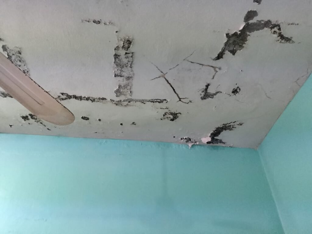 En días recientes, en uno de los salones se desprendió un pedazo de concreto que cayó a un costado de un pupitre ocupado por una alumna. “Fue un milagro que no le cayera encima”, relató una madre de familia, visiblemente molesta.