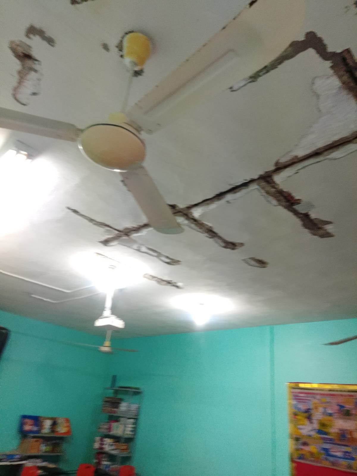 En días recientes, en uno de los salones se desprendió un pedazo de concreto que cayó a un costado de un pupitre ocupado por una alumna. “Fue un milagro que no le cayera encima”, relató una madre de familia, visiblemente molesta.
