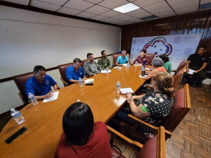 La junta se llevó a cabo en la sala de cabildo del palacio municipal, con la presencia de directores, maestros, elementos de Protección Civil y militares, quienes se pusieron de acuerdo para elaborar el programa oficial del acto cívico.