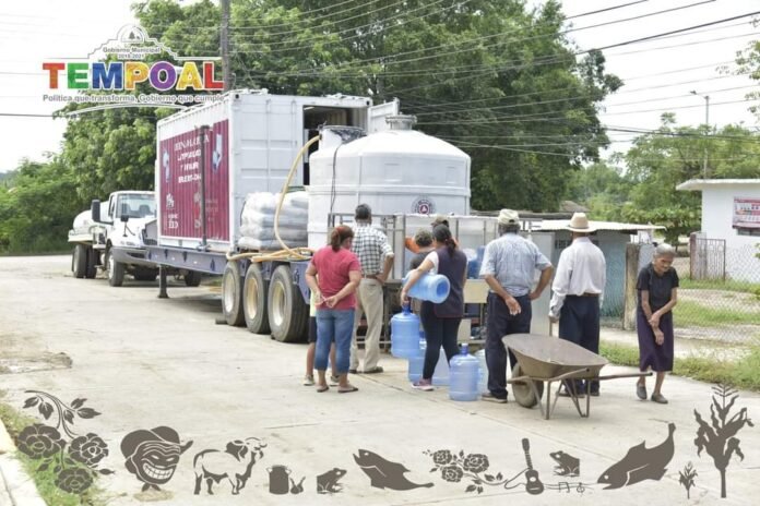 TEMPOAL, Ver. – Gracias a las oportunas gestiones hechas por el alcalde, Dr. Abel Hermenegildo Díaz Ponce, en coordinación con el Gobierno del Estado de Veracruz, el Sistema de Protección Civil del gobierno federal puso a disposición del municipio una planta potabilizadora y purificadora de agua, la cual ha estado suministrando el vital líquido a familias afectadas por el ciclón «Grace».
