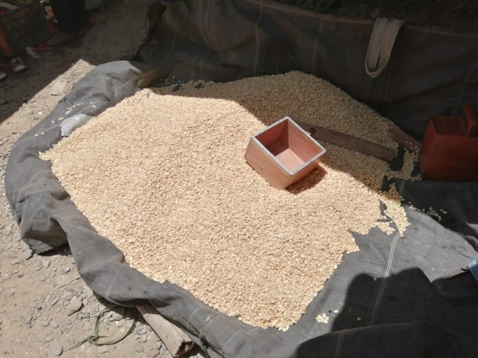 “Por un lado las ventas están muy flojas por el tiempo que no llueve, se conjuga todo, el maíz híbrido está en 35 que traen de fuera y el maíz de hoja o criollo, el domingo estuvo en 65, 70 pesos el cuartillo”, dijo Lino Rivera Tenorio, vendedor de maíz en Tantoyuca.