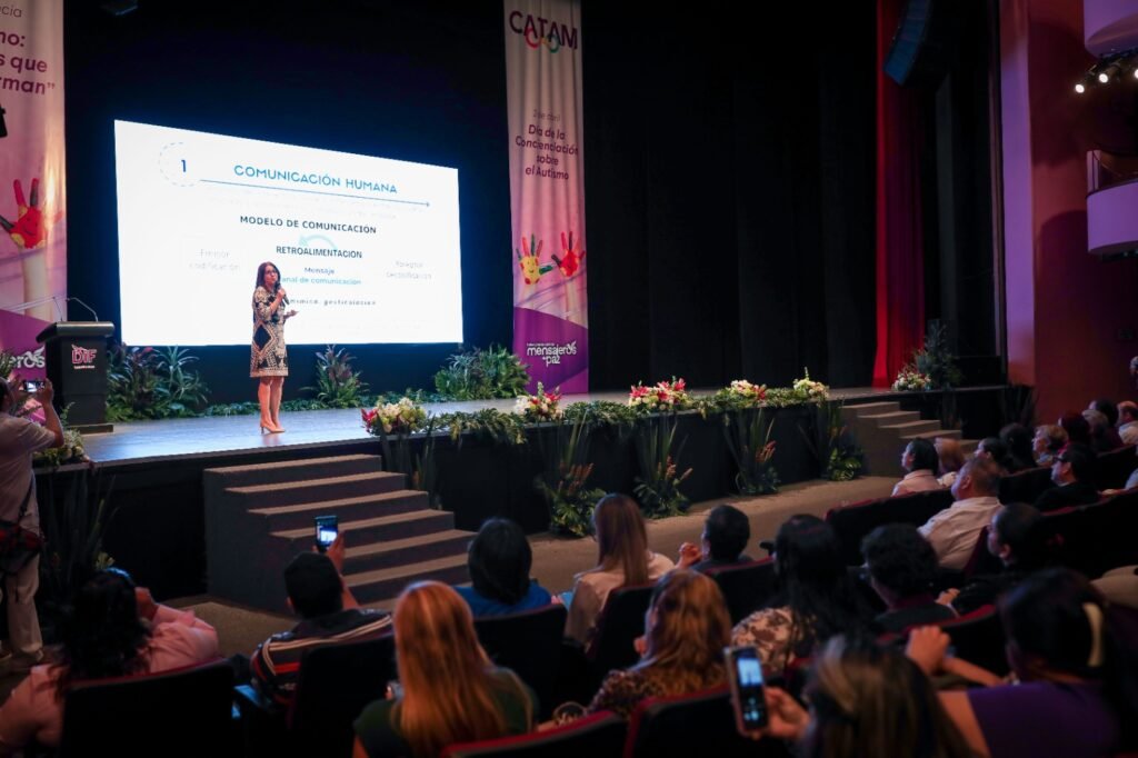 Ciudad Victoria, Tamaulipas, a 25 de marzo del 2026.- Para sensibilizar a la comunidad en general, así como fortalecer el conocimiento sobre el autismo y reafirmar el compromiso social de construir entornos más empáticos, accesibles e inclusivos, el Sistema DIF Tamaulipas, que preside la doctora María de Villarreal, llevó a cabo la conferencia “Autismo: Historias que Transforman”, en el marco de la conmemoración del Día de la Concienciación sobre el Autismo y el Mes de la Educación Especial e Inclusiva.