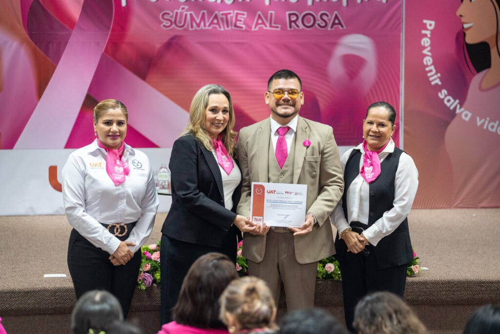 Esta actividad forma parte de la serie de eventos que la UAT organiza durante el mes de octubre en sus diferentes dependencias, con el propósito de fomentar la conciencia sobre la detección temprana del cáncer de mama y reforzar el compromiso institucional con la salud integral y el bienestar de su comunidad universitaria.
