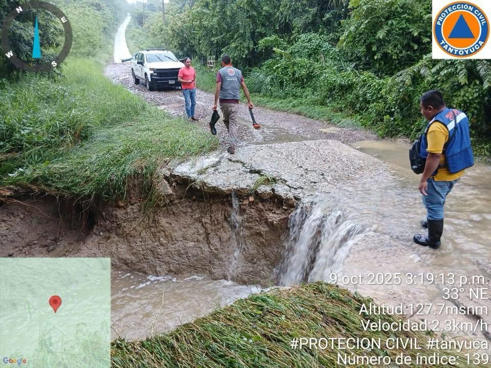 Asimismo, brigadas municipales recorren diversas comunidades para verificar daños en viviendas, caminos rurales y puentes, destacando el colapso total de un puente antes de llegar a la localidad San Juan Chijolar.