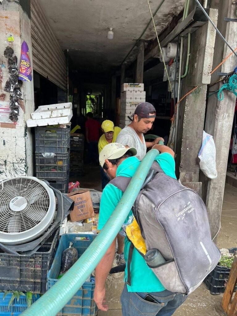 En la zona del mercado en condominio y áreas aledañas, el ayuntamiento envió pipas para realizar tareas de lavado y limpieza luego de que bajara el nivel del arroyo de respuesta rápida. “La afectación más grave se registró en la cabecera municipal; estamos concentrando esfuerzos para, en cuanto las condiciones lo permitan, rehabilitar caminos dañados y continuar con la limpieza de banquetas y alcantarillas”, puntualizó el alcalde.