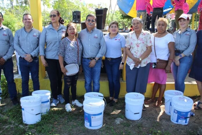 Aprovechando las festividades el alcalde Agustín Ramos Hernández, hizo entrega de pintura para mantenimiento de una escuela y balones para sus alumnos, tambien entregó material para la construcción de un pozo.