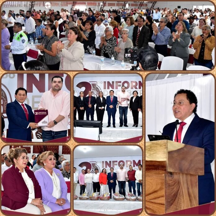 Naranjos Amatlán, Ver. – Realista 2º Informe de labores rindió el alcalde, Mtro. José Luis Banda Cruz, quien afirmó que Naranjos avanza en la dirección correcta, habiendo alcanzado importantes metas en el 2023, aplicando con eficiencia los recursos públicos para resolver los problemas y necesidades del municipio.