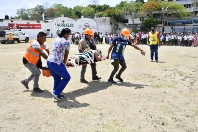 El gobierno municipal que preside el alcalde, ingeniero Jesús Guzmán Avilés, cuenta con personal capacitado en atención a emergencias que puedan presentarse en la ciudad, por ello participó personal de PC Municipal en el simulacro de la escuela primaria.