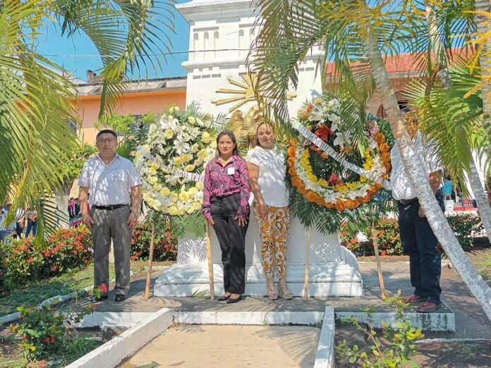 Alumnos de la institución educativa presentaron una poesía sobre Miguel Hidalgo y Costilla, para después autoridades educativas y municipales colocaron una ofrenda floral en el monumento dedicado al Cura de Dolores y realizaron una guardia de honor.