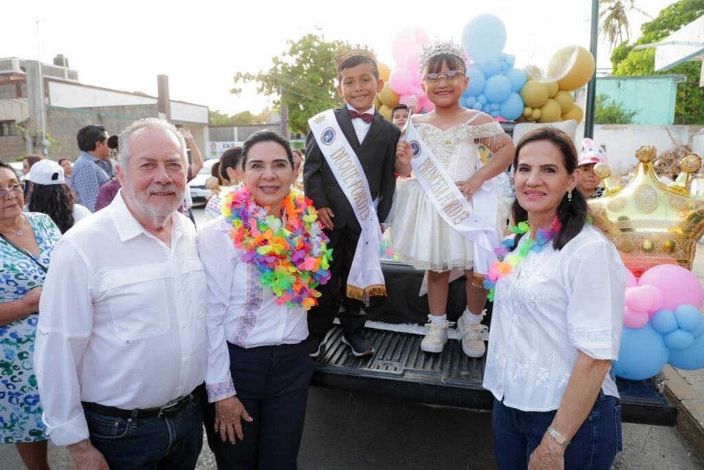 Durante el festejo, la Presidenta Municipal participó en el desfile conmemorativo, recorriendo las principales calles del sector, y encabezó la coronación de Victoria Mellado como Reina de la Colonia; Erick Figueroa, príncipe; Ingrid U., princesa; Víctor Yáñez, príncipe; y Karime Villa Montes, Reina de la Comunidad.