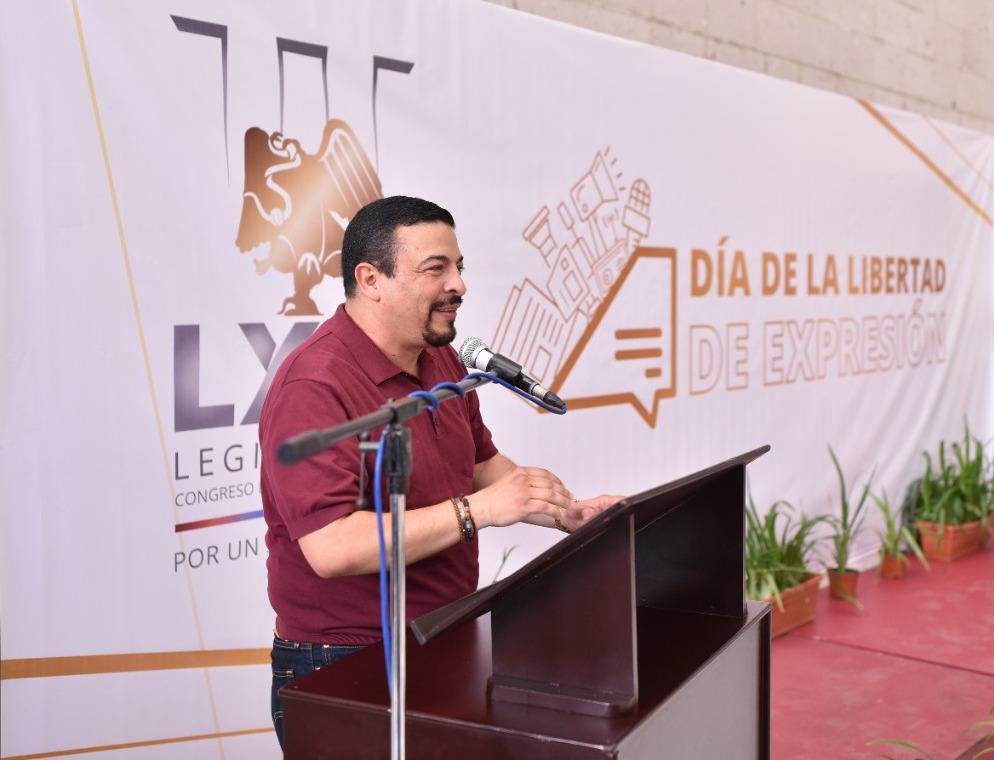 En la explanada del Palacio Legislativo, con motivo del Día de la Libertad de Expresión, que en México se celebra cada 7 de junio, en presencia del secretario general del Congreso del Estado, Domingo Bahena Corbalá, de diputadas y diputados, el representante popular reflexionó acerca del valor del trabajo de quienes cada día informan a la población.