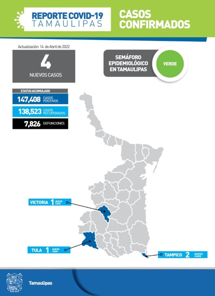 Tamaulipas con 4 nuevos casos de Covid