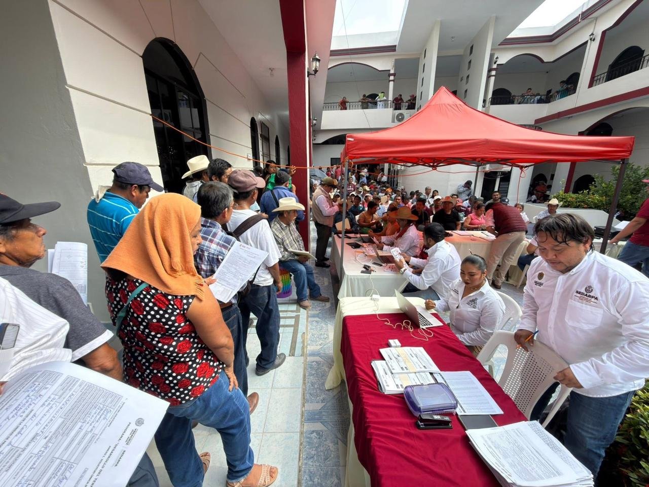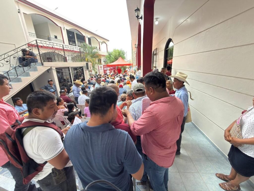 Tantoyuca, Ver.- Desde las primeras horas de este día, cientos de campesinos acudieron al Palacio Municipal tras la instalación de la ventanilla de la convocatoria del programa de Granos Básicos impulsado por la Secretaría de Desarrollo Agropecuario, Rural y Pesca (SEDARPA), dirigido al fortalecimiento de la soberanía alimentaria.
