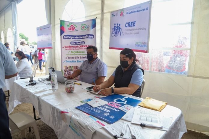Altamira, Tamaulipas.- Como parte de la sinergia que efectúa el Ayuntamiento de Altamira con otros niveles de gobierno, como lo es el Gobierno del Estado, se llevó a cabo una importante jornada médica asistencial organizada por el Sistema para el Desarrollo Integral de la Familia (DIF) Estatal, que titula la señora Mariana Gómez de García Cabeza de Vaca, realizada en el campo de fútbol de la colonia Adolfo López Mateos, ubicado en la calle Aguascalientes esquina con Fundo Legal.
